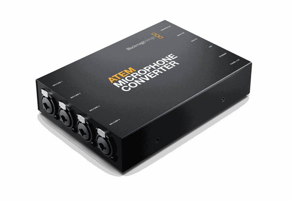 Giờ đây, thật dễ dàng để mở rộng đầu vào MADI trên ATEM Television Studio thành nhiều micro hoặc nguồn trộn âm thanh bên ngoài. Micrô ATEM Switcher chỉ cần cắm vào cổng ATEM Television Studio MADI, vì vậy không có thiết lập cần thiết và các đơn vị bổ sung thậm chí có thể được xâu chuỗi để có thêm nguồn. Mỗi bộ chuyển đổi có 4 đầu vào tương tự có thể chọn mic/đường truyền và có Phantom Power. Thiết kế có chất lượng âm thanh tuyệt vời với độ ồn cực thấp, dải động rộng và độ méo rất thấp. Thiết kế thậm chí sử dụng 8 các ADC riêng biệt trên mỗi đầu vào riêng biệt hoạt động cùng nhau để mở rộng động phạm vi! Ngoài ra còn có một đầu ra giám sát HDMI với dạng sóng âm thanh cuộn.