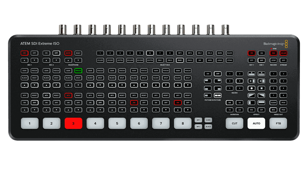 Khi thực hiện các sản phẩm trực tiếp lớn hơn với nhiều camera, sẽ rất hữu ích khi xem tất cả các nguồn video của bạn cùng một lúc trên một màn hình duy nhất. Các mẫu ATEM SDI Pro và ATEM SDI Extreme bao gồm đa chế độ xem chuyên nghiệp cho phép bạn xem tất cả các đầu vào video, xem trước và lập trình trên một màn hình SDI duy nhất! Chỉ cần chọn nút M / V trên bảng điều khiển phía trước để chọn chế độ xem đa điểm! Mỗi chế độ xem camera bao gồm các chỉ báo kiểm đếm để bạn biết khi nào mỗi nguồn phát trực tuyến và mỗi chế độ xem cũng có nhãn tùy chỉnh và đồng hồ đo âm thanh. Ngoài ra, các mẫu ATEM SDI Extreme cho phép bạn chọn tối đa 16 chế độ xem tùy chỉnh! Multiview thậm chí còn bao gồm trạng thái ghi âm, phát trực tuyến và bộ trộn âm thanh!
