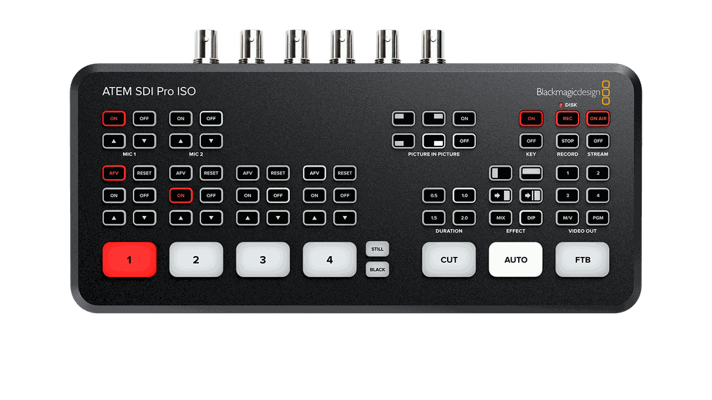 Khi thực hiện các sản phẩm trực tiếp lớn hơn với nhiều camera, sẽ rất hữu ích khi xem tất cả các nguồn video của bạn cùng một lúc trên một màn hình duy nhất. Các mẫu ATEM SDI Pro và ATEM SDI Extreme bao gồm đa chế độ xem chuyên nghiệp cho phép bạn xem tất cả các đầu vào video, xem trước và lập trình trên một màn hình SDI duy nhất! Chỉ cần chọn nút M / V trên bảng điều khiển phía trước để chọn chế độ xem đa điểm! Mỗi chế độ xem camera bao gồm các chỉ báo kiểm đếm để bạn biết khi nào mỗi nguồn phát trực tuyến và mỗi chế độ xem cũng có nhãn tùy chỉnh và đồng hồ đo âm thanh. Ngoài ra, các mẫu ATEM SDI Extreme cho phép bạn chọn tối đa 16 chế độ xem tùy chỉnh! Multiview thậm chí còn bao gồm trạng thái ghi âm, phát trực tuyến và bộ trộn âm thanh!