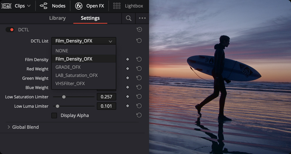 Phiên bản mới cũng bổ sung các plugin như background defocus và Film Look Creator để tạo hiệu ứng phim chuyên nghiệp. Tất cả các hiệu ứng này có thể được áp dụng và điều chỉnh trên nhiều trang trong DaVinci Resolve.